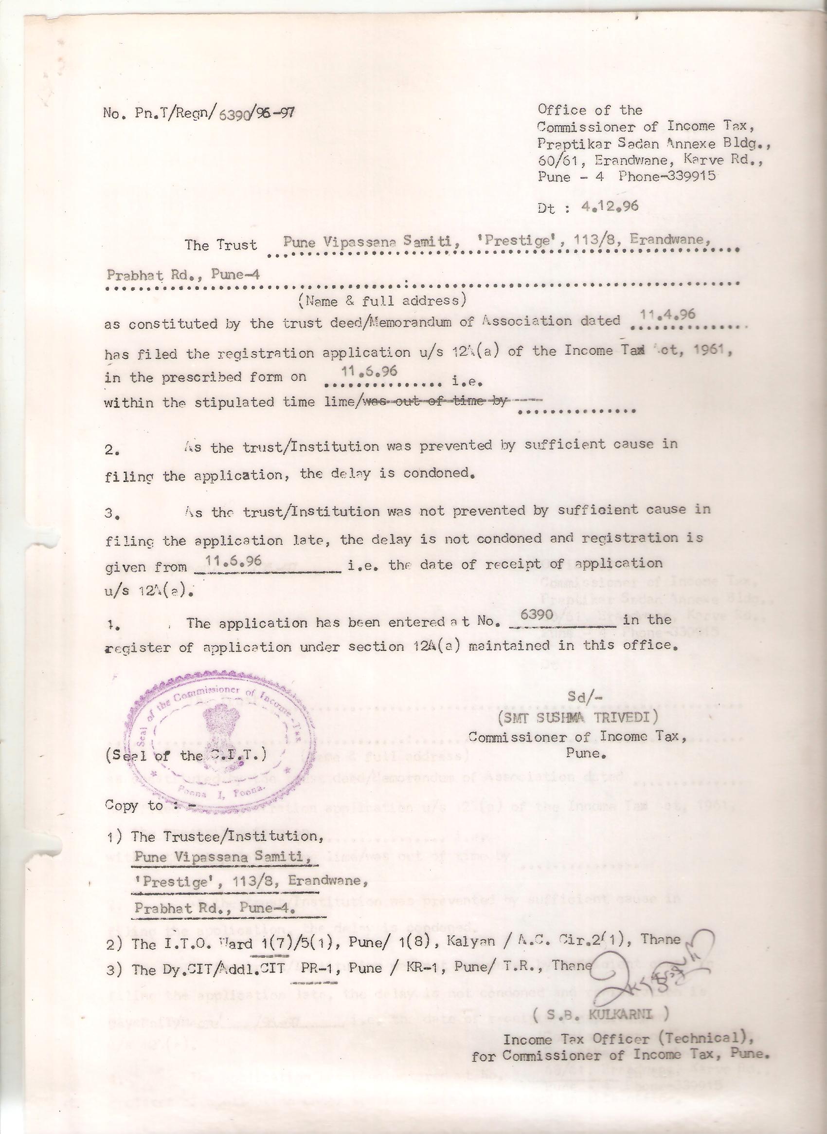 Pune Vipassana Samiti by post or email on given email id.